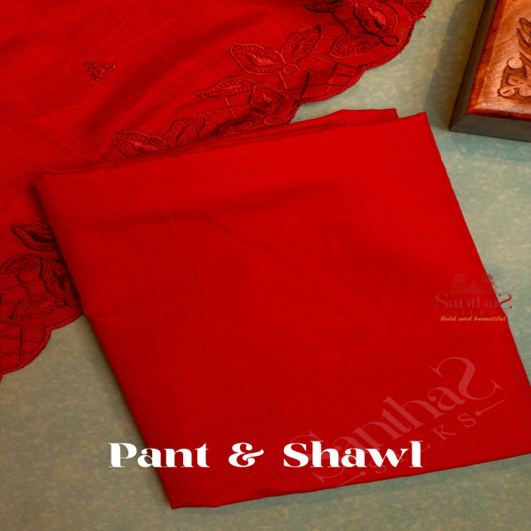 BLOOD RED SEMI TUSSAR UNSTITCHED SALWAR SUIT Top - 2.25 meters Bottom - 2 meters Shawl - 2.25 meters