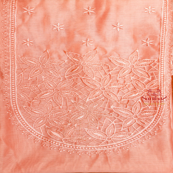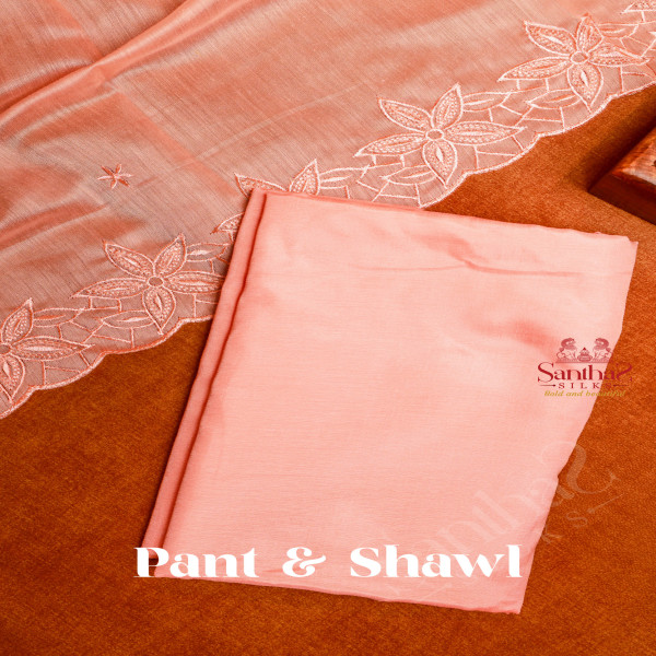 PEACH COLOUR SEMI TUSSAR UNSTITCHED SALWAR SUIT Top - 2.25 meters Bottom - 2 meters Shawl - 2.25 meters