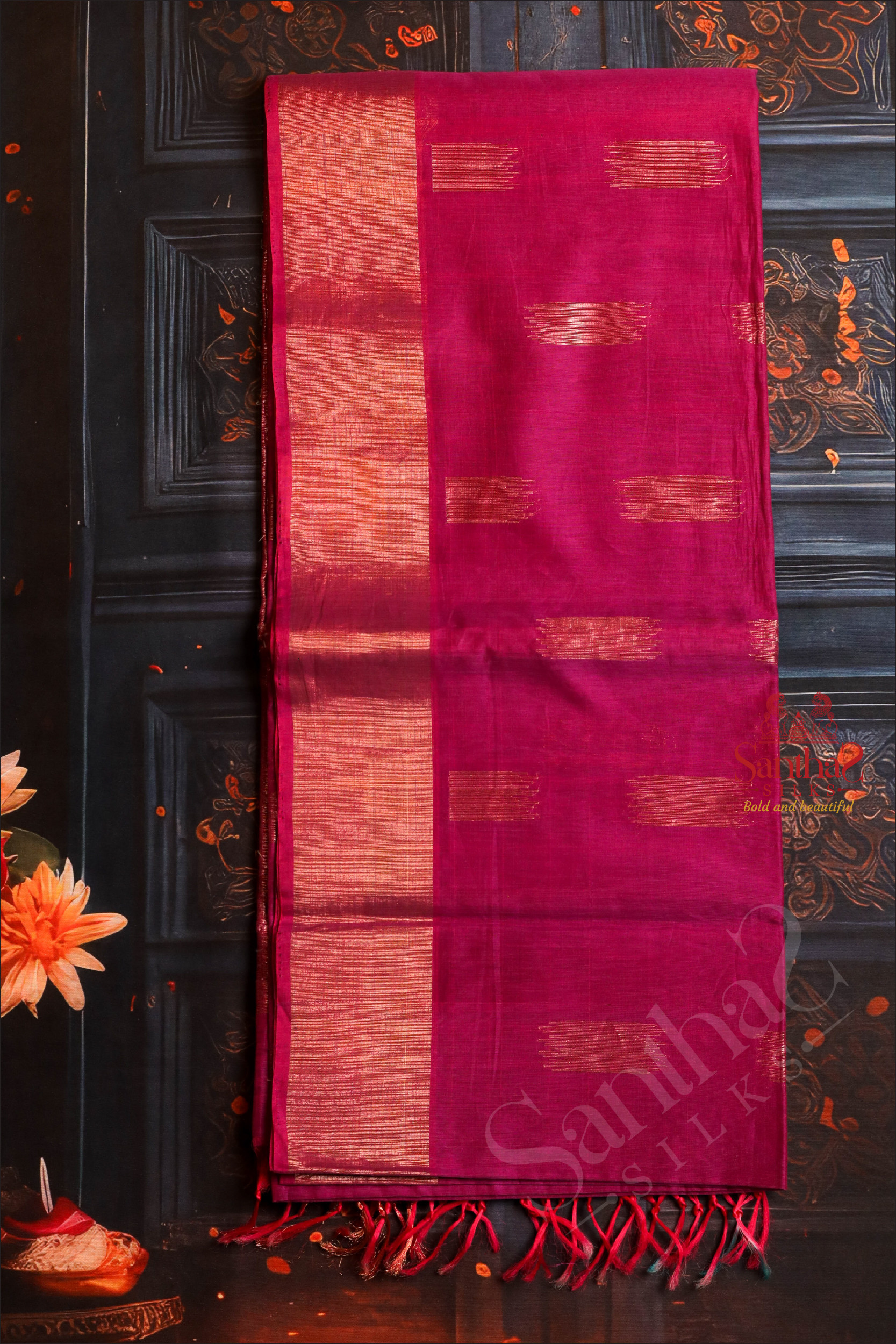 DARK PINK COLOUR BODY WITH GOLDEN ZARI BUTTA WITH SELF BLOUSE
