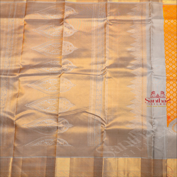 GREY & MANGO YELLOW COLOUR BODY WITH SILVER ZARI BUTTAS AND CONTRAST PALLU & BLOUSE