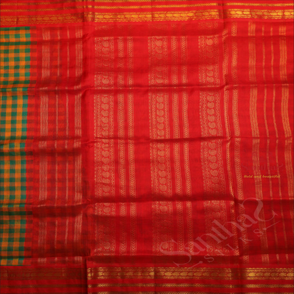 YELLOW AND GREEN COLOUR CHECKED BODY WITH CONTRAST BLOUSE & BORDER