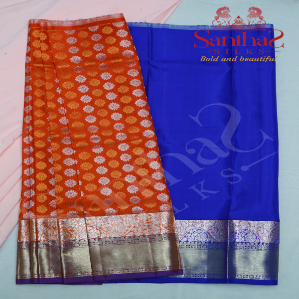 ORANGE COLOUR BODY WITH CONTRAST BLOUSE & BORDER