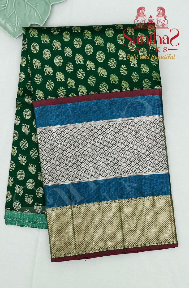 GREEN COLOUR BODY IN ZARI BUTTA WITH CONTRAST BLOUSE & BORDER