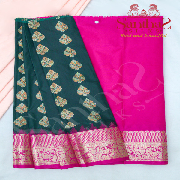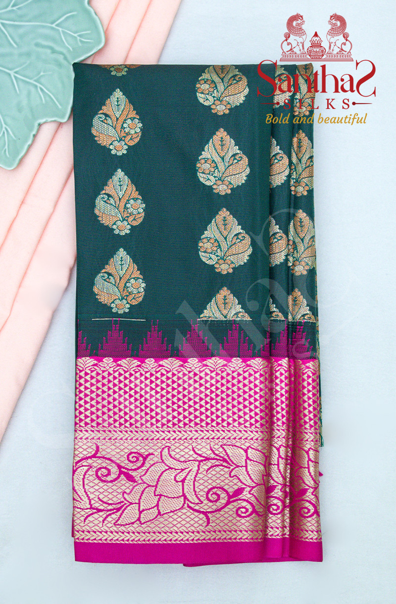 DARK GREEN COLOUR BODY IN ZARI BUTTA WITH CONTRAST BLOUSE & BORDER