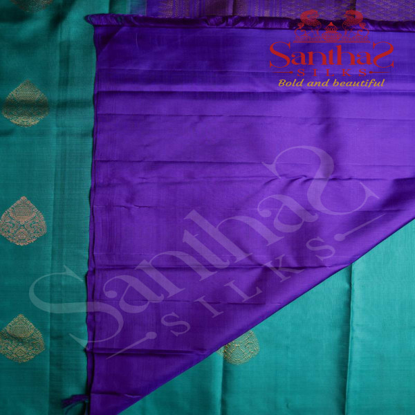 AQUAMARINE BLUE COLOUR BODY BIG BUTTA WITH CONTRAST BLOUSE