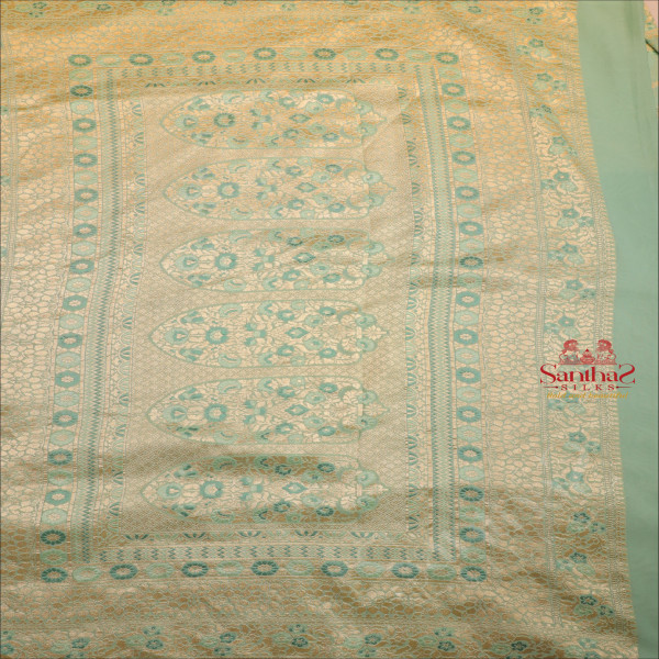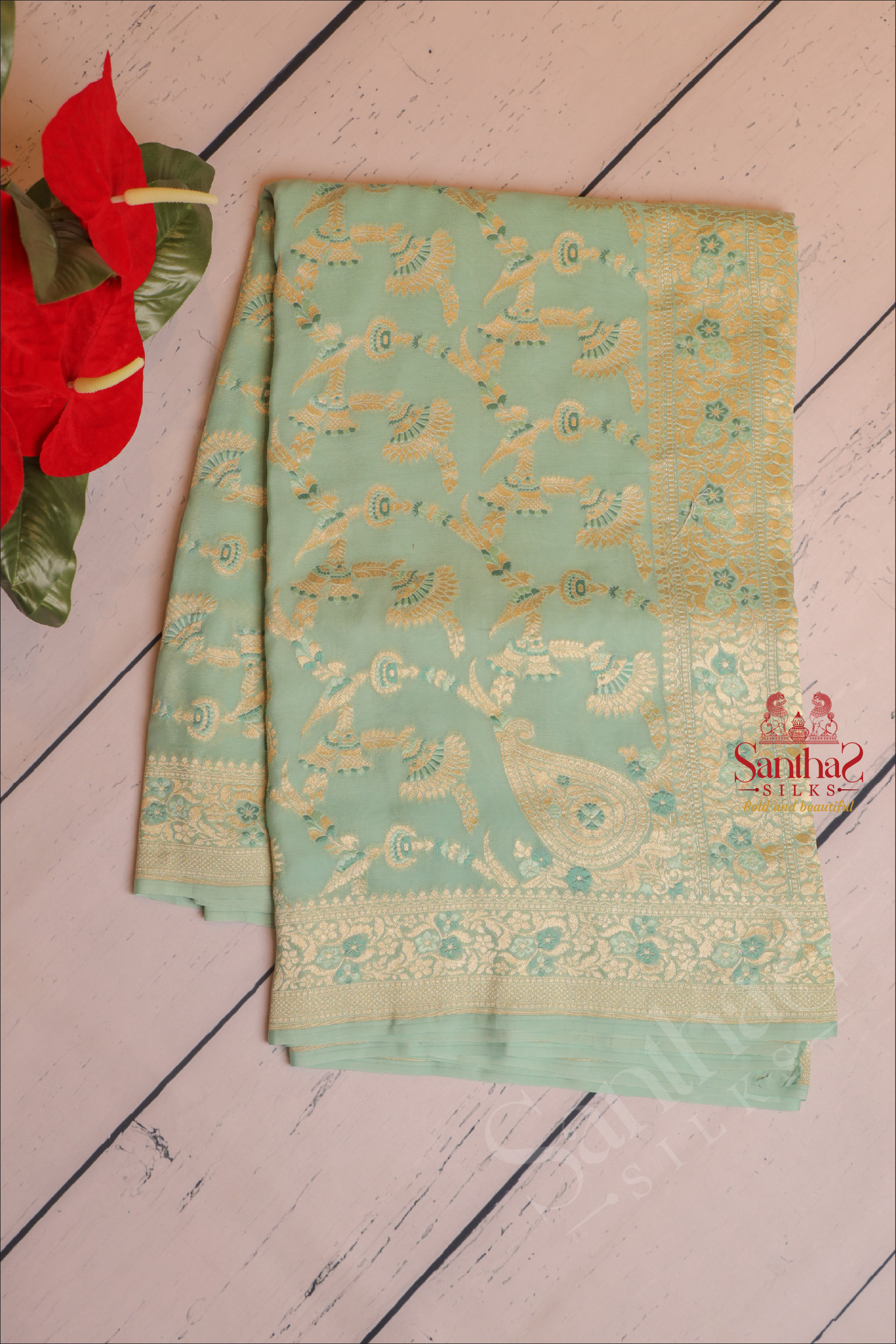 GEORGETTE BANARAS SILK SAREE IN PASTEL BLUE COLOUR WITH SELF COLOUR BLOUSE