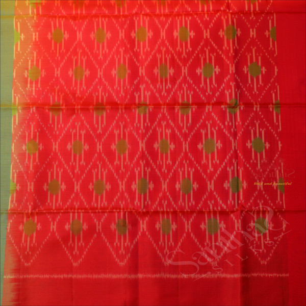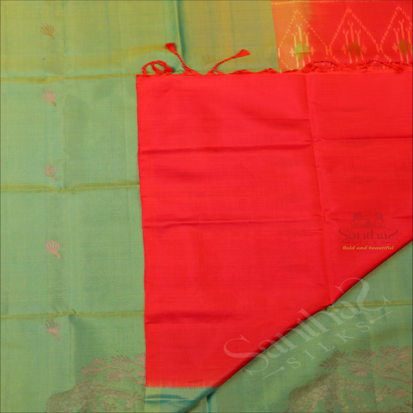 BRIGHT YELLOW GREEN COLOUR BODY WITH GOLDEN ZARI GIRAFEE BUTTA WITH CONTRAST BLOUSE & BORDER
