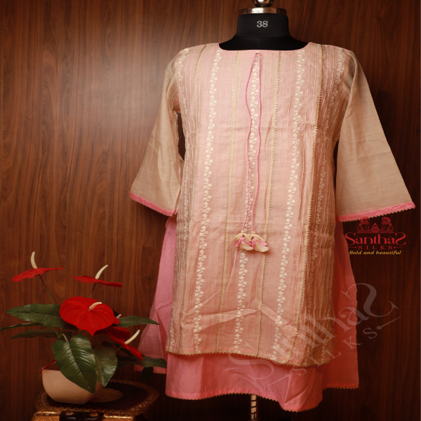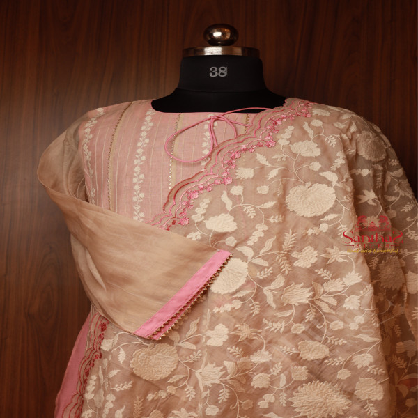 PINK CHANDERI SEMI - STITCHED SUIT SET