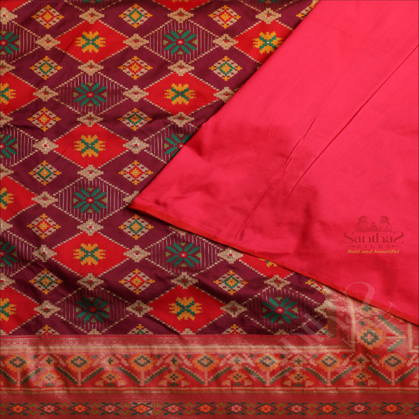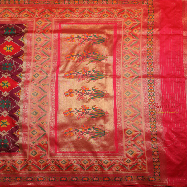 PURE BANARAS SILK SAREE IN MAGENTA COLOUR WITH RANI PINK PALLU & BLOUSE