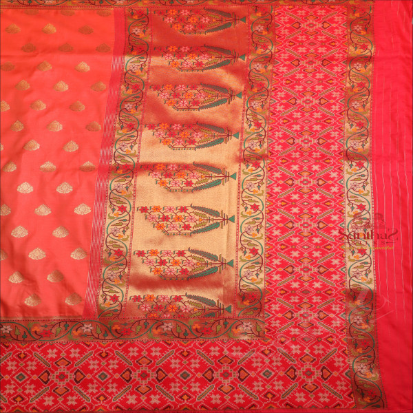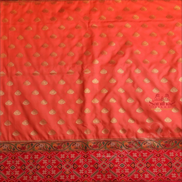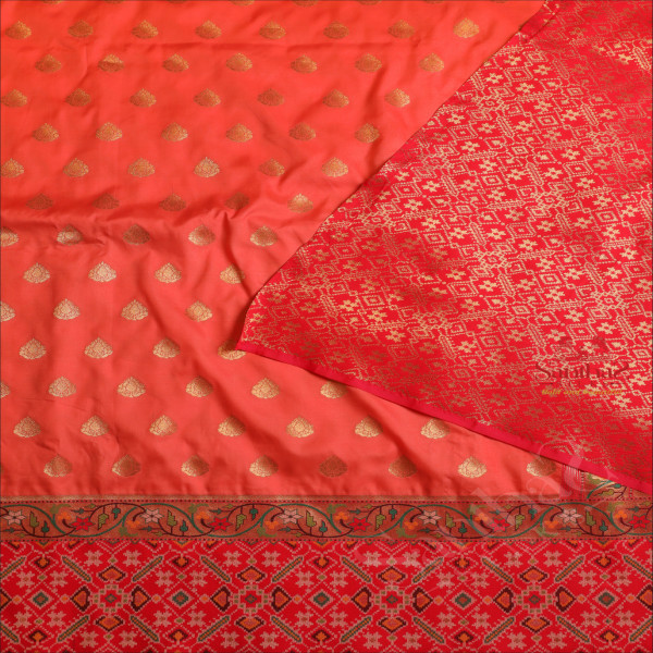 PURE BANARAS SILK SAREE IN PEACH PINK WITH RED COLOUR PALLU & BLOUSE