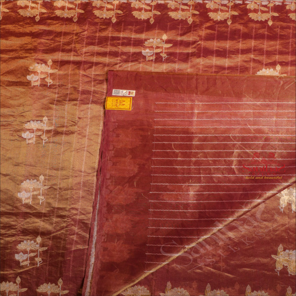 KORA KHATAN SILK SAREE IN MAGENTA & GOLD MIXED COLOUR WITH LOTUS FLOWER MOTIFS