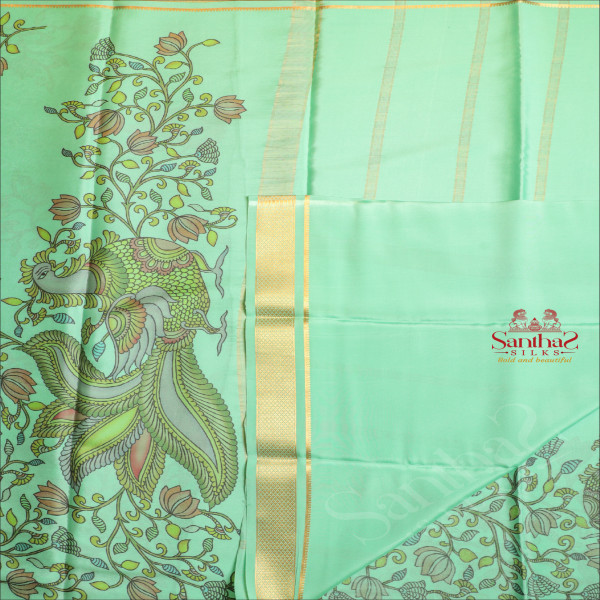 SPRING GREEN COLOUR MYSORE SILK SAREE WITH KALAMKARI DIGITAL PRINT PATTERN AND SELF BLOUSE