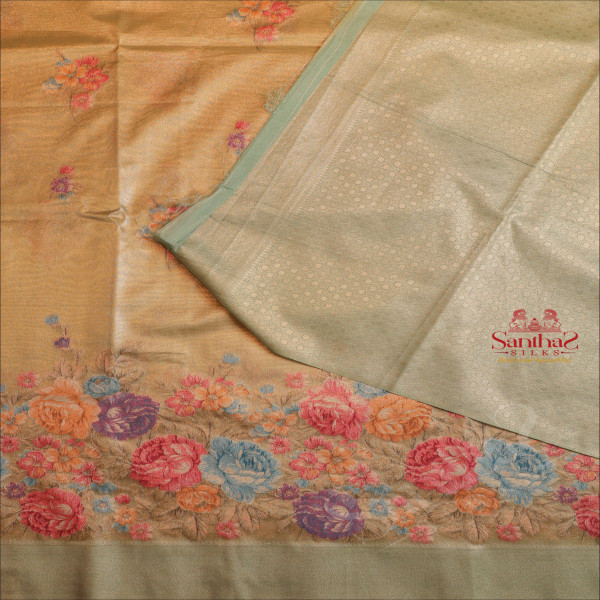 ORGANZA TISSUE SAREE WITH FLORAL DESIGN IN PALE GREEN COLOUR BODY