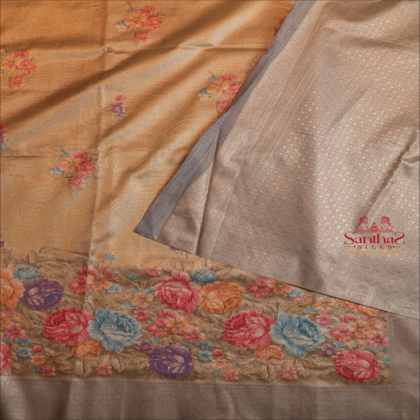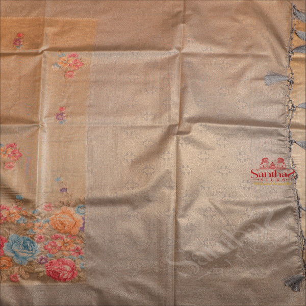 ORGANZA TISSUE SAREE WITH FLORAL DESIGN IN GREY COLOUR BODY