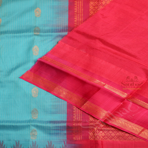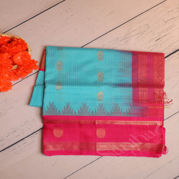 SKY BLUE COLOUR BODY WITH GOLDEN ZARI BUTTA WITH CONTRAST BLOUSE & BORDER