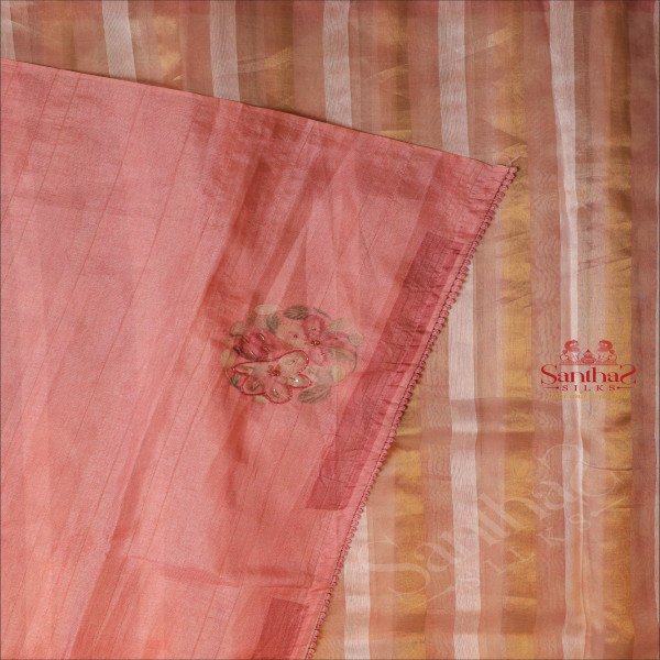 ORGANZA TISSUE SAREE WITH PASTEL ROSE COLOUR LACE BORDER