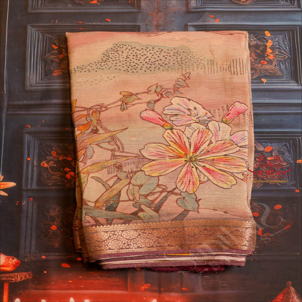 GEORGETTE CRUSH GREY COLOUR BODY WITH FANCY MOTIFS AND CONTRAST PALLU & BLOUSE