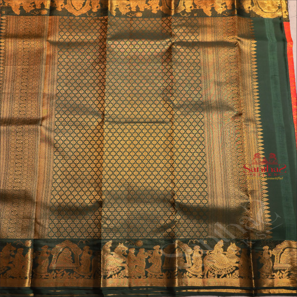 ORANGE COLOUR BODY WITH GOLDEN ZARI HEAVY DESIGN AND CONTRAST PALLU & BLOUSE