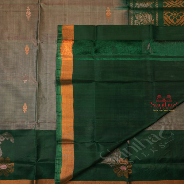 GREYISH GREEN COLOUR BODY WITH SILVER ZARI BUTTA WITH CONTRAST BLOUSE & BORDER