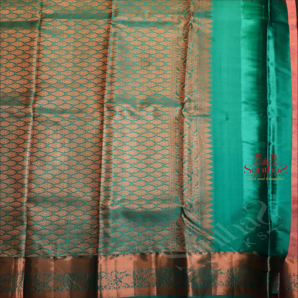 PINK COLOUR BODY WITH JACQUARD FLORAL EMBOSED WITH CONTRAST GREEN BLOUSE & BORDER