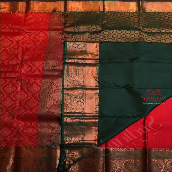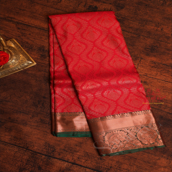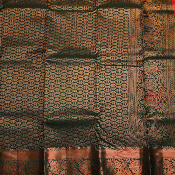 DARK PINK COLOUR BODY WITH JACQUARD FLORAL EMBOSED WITH CONTRAST GREEN BLOUSE & BORDER