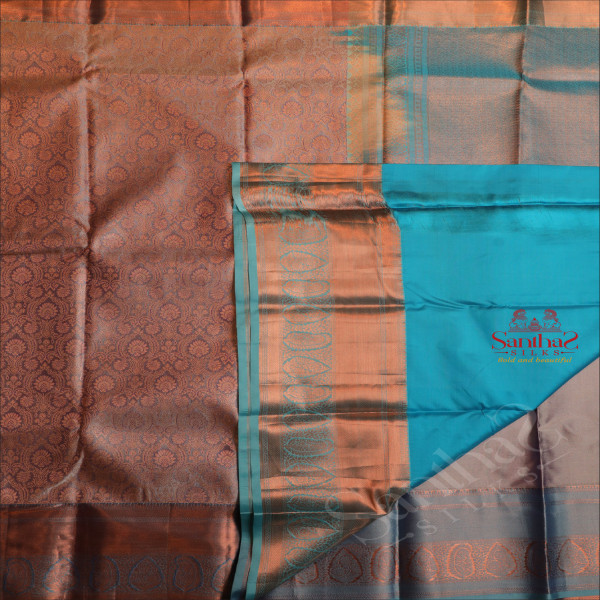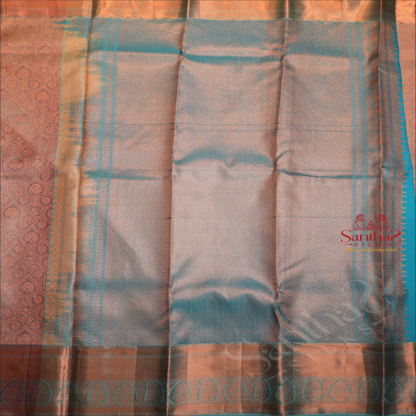 PIGEON BLUE COLOUR BODY WITH JACQUARD FLORAL EMBOSED WITH CONTRAST BLOUSE & BORDER