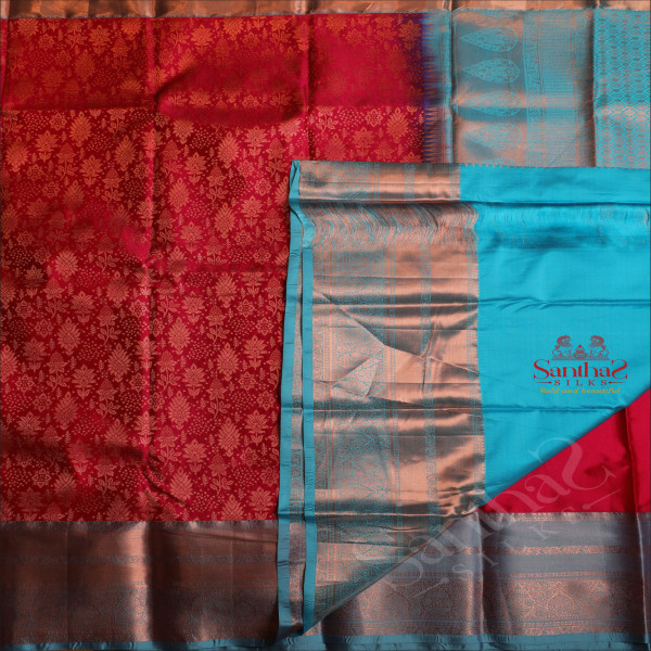 BRIGHT ROSE COLOUR BODY WITH JACQUARD FLORAL EMBOSED WITH CONTRAST BLOUSE & BORDER