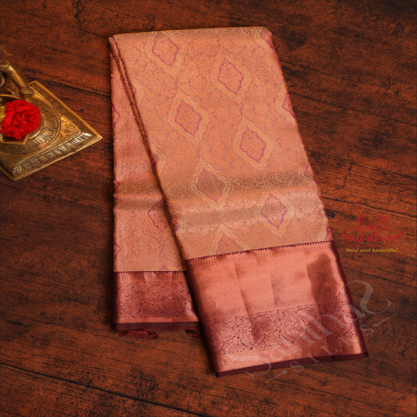 PASTEL VIOLET COLOUR BODY WITH JACQUARD FLORAL EMBOSED WITH CONTRAST BLOUSE & BORDER