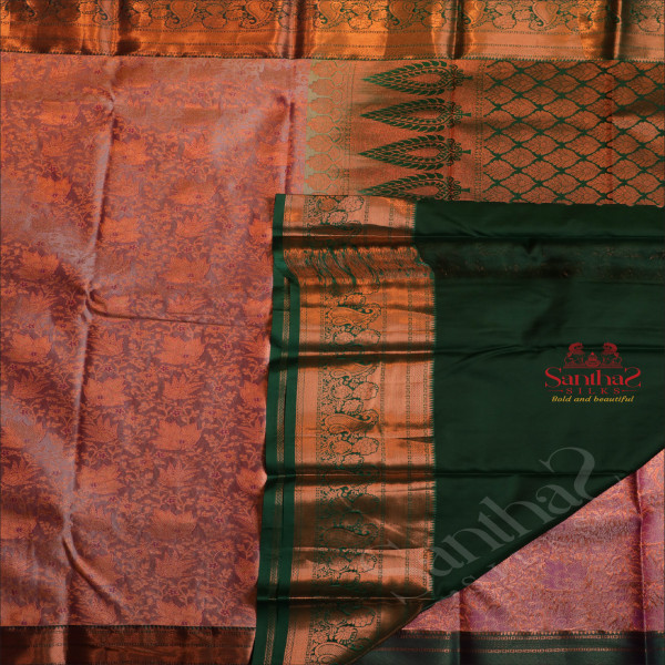 LAVENDER COLOUR BODY WITH JACQUARD FLORAL EMBOSED IN COPPER ZARI WITH CONTRAST BLOUSE & BORDER