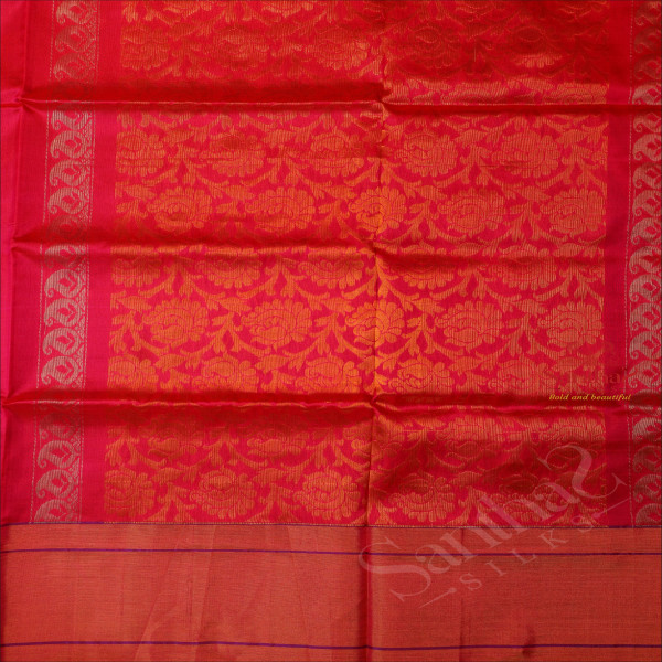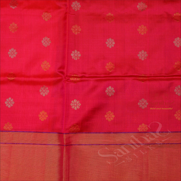 PINK COLOUR BODY WITH GOLDEN ZARI FLORAL BUTTA WITH CONTRAST BLOUSE & BORDER