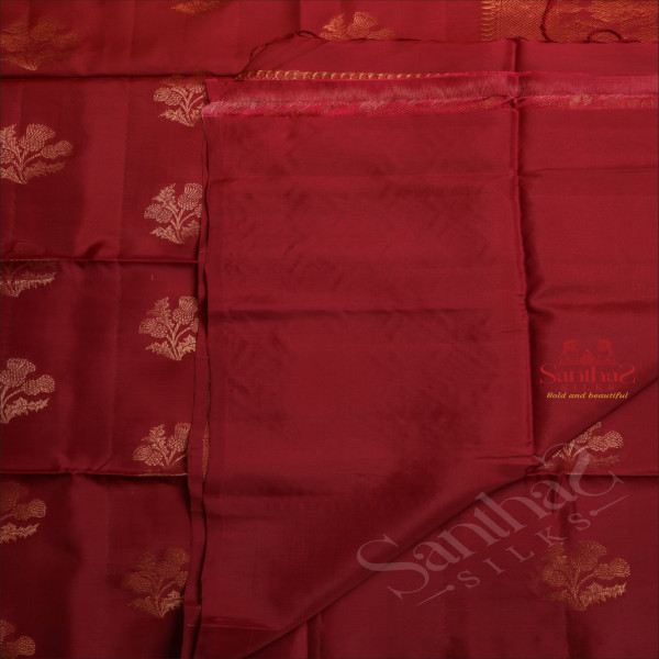 MAROON COLOUR BODY WITH GOLDEN ZARI FLORAL BUTTA WITH SELF BLOUSE