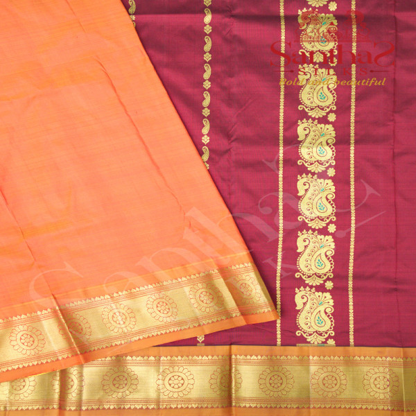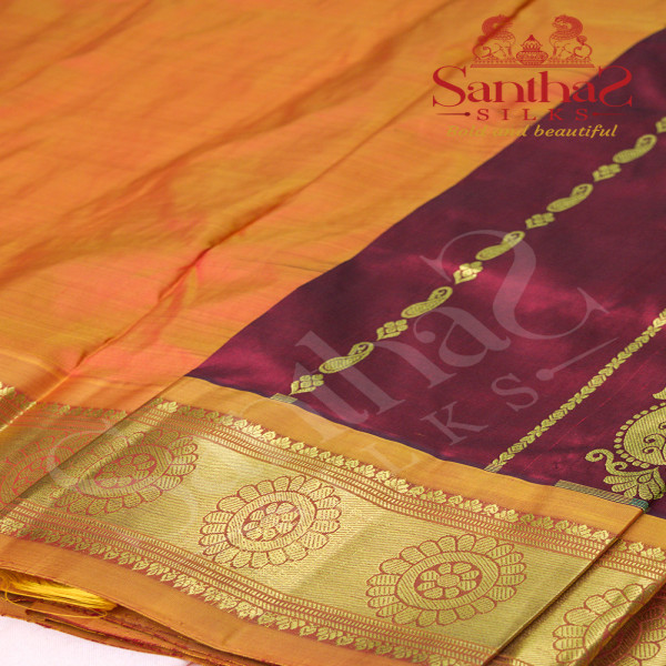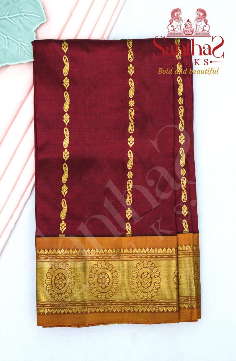 WINE MAROON BODY IN ZARI BUTTA WITH CONTRAST BLOUSE & BORDER