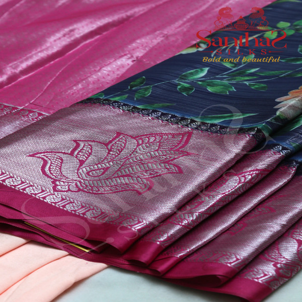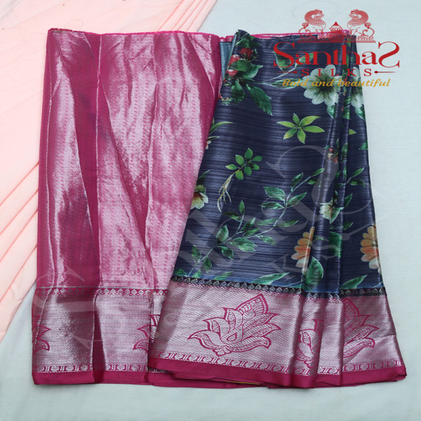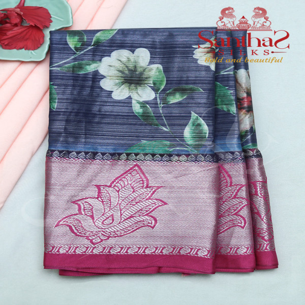 INK BLUE IN BODY FLORAL PATTERN WITH CONTRAST BLOUSE & BORDER