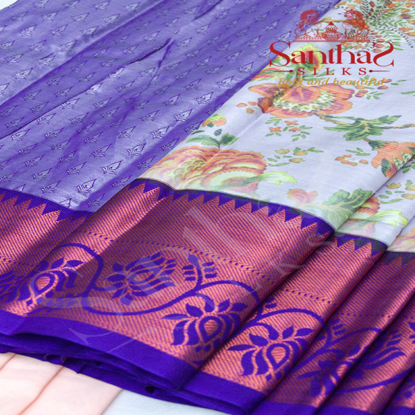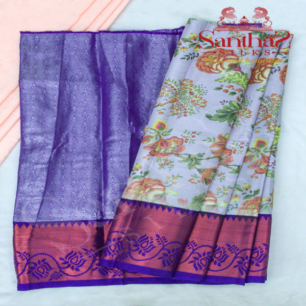 SILVER GREY COLOUR BODY IN DIGITAL FLORAL PRINT WITH CONTRAST BLOUSE & BORDER
