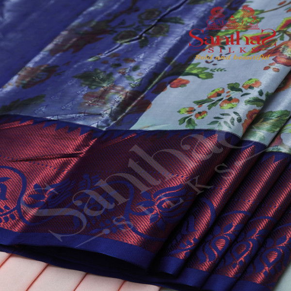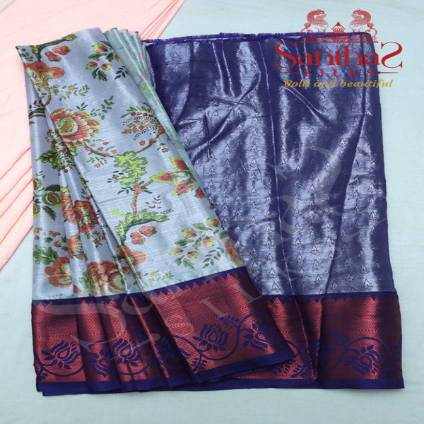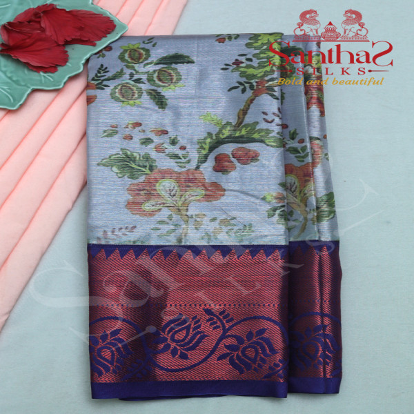 LIGHT PINK TISSUE BODY IN DIGITAL PRINT WITH CONTRAST BLOUSE & BORDER