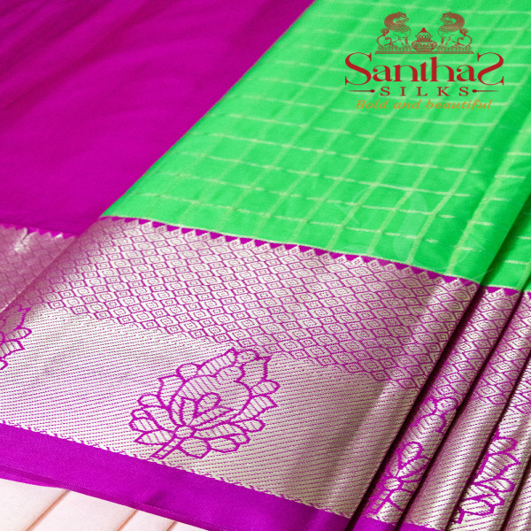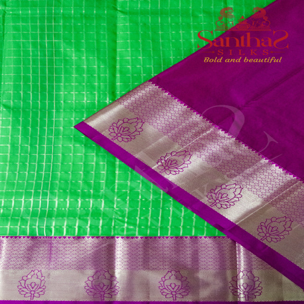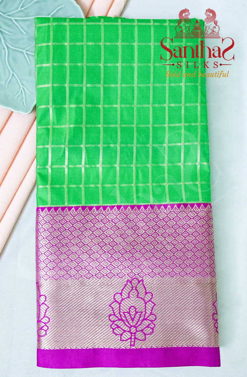 GREEN COLOUR BODY IN CHECKED PATTERN WITH CONTRAST BLOUSE & BORDER