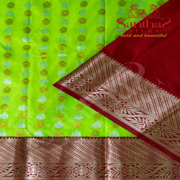 MEENAKSHI GREEN BODY IN ZARI BUTTA WITH CONTRAST BLOUSE & BORDER