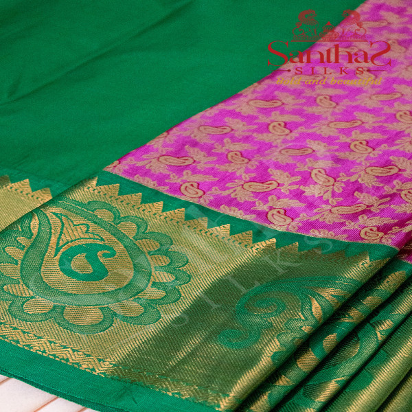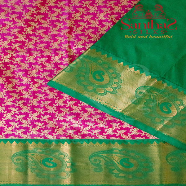 PINK COLOUR BODY IN LEAF BUTTA WITH CONTRAST BLOUSE & BORDER