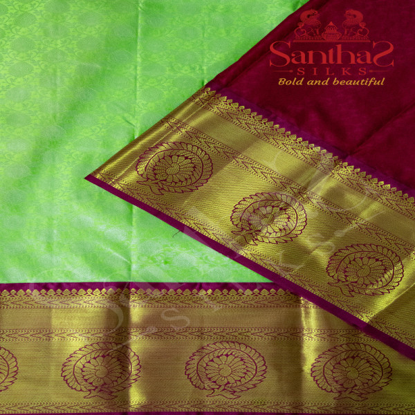 FLOURESCENT GREEN BODY IN FLORAL PATTERN WITH CONTRAST BLOUSE & BORDER