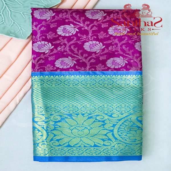 DARK PINK BODY IN FLORAL PATTERN WITH CONTRAST BLOUSE & BORDER
