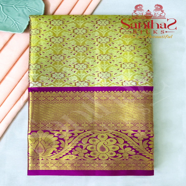 GOLD TISSUE BODY IN FLORAL PATTERN WITH CONTRAST BLOUSE & BORDER