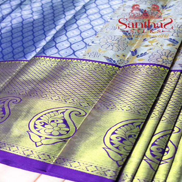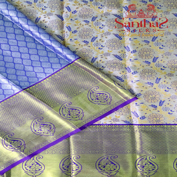 SILVER GREY TISSUE BODY IN FLORAL PATTERN WITH CONTRAST BLOUSE & BORDER