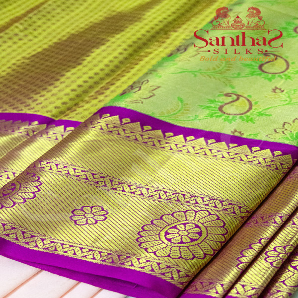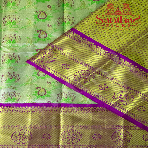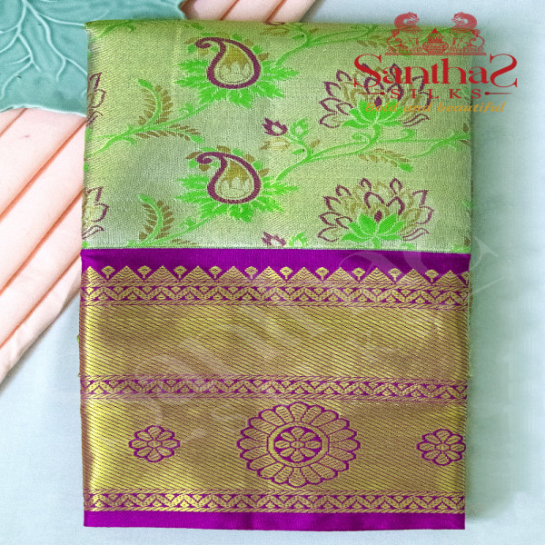 GREEN COLOUR BODY IN TISSUE FLORAL PATTERN WITH CONTRAST BLOUSE & BORDER