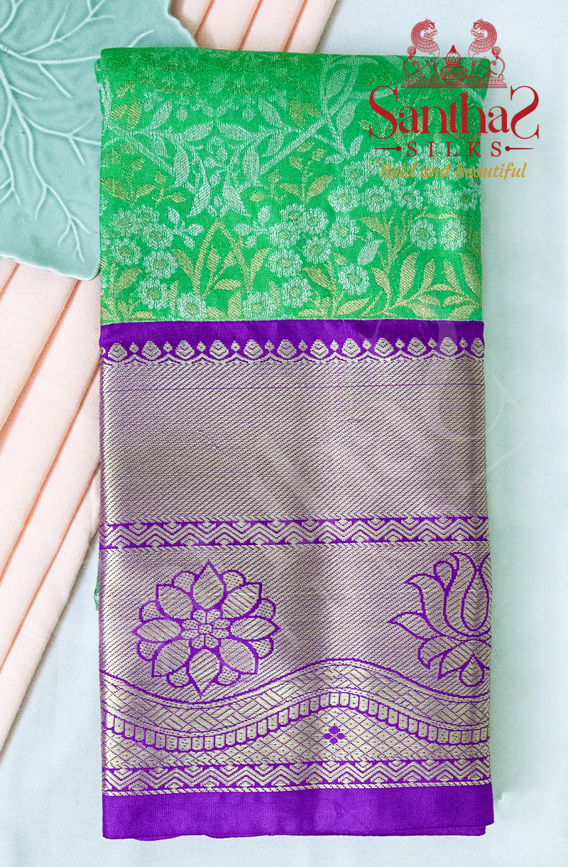 GREEN COLOUR BODY IN FLORAL PATTERN WITH CONTRAST BLOUSE & BORDER