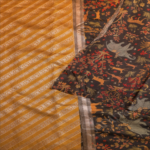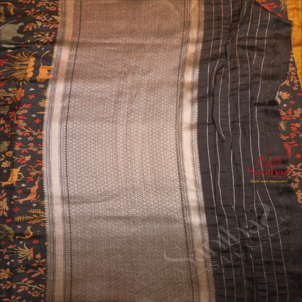 SEMI BANARAS SILK SAREE WITH FLORAL & ANIMAL DIGITAL PRINTS IN PALLU & BLOUSE