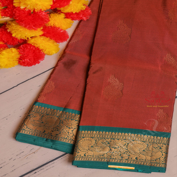 DUSTY PINK COLOUR BODY WITH GOLDEN ZARI BUTTA WITH CONTRAST BLOUSE & BORDER