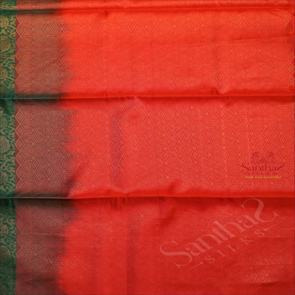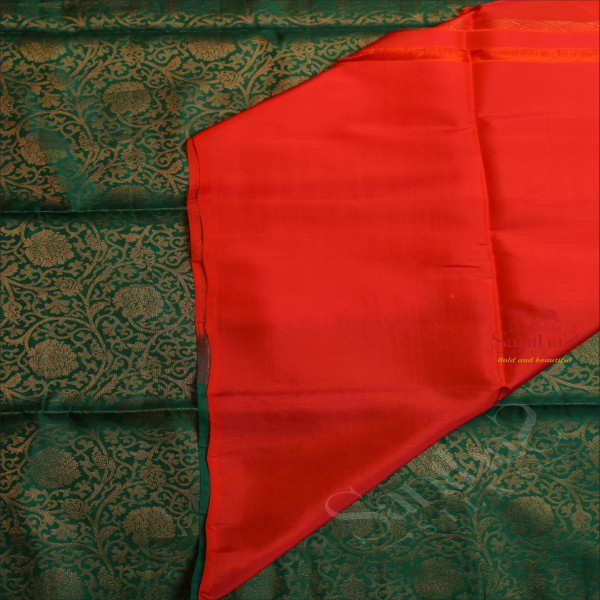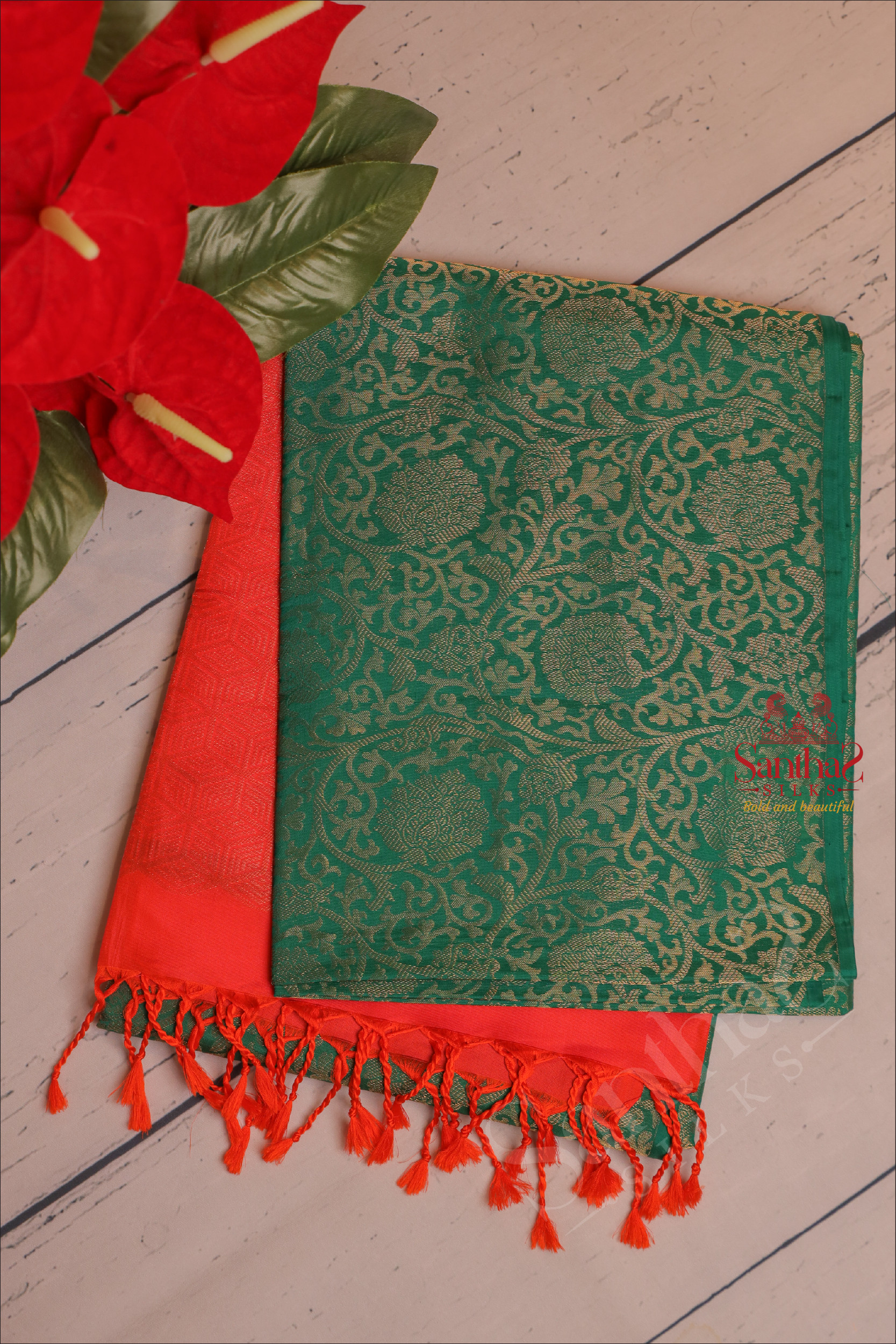 GREEN COLOUR BODY WITH GOLDEN ZARI FLORAL PATTERN WITH CONTRAST BLOUSE & BORDER