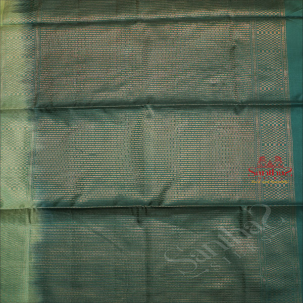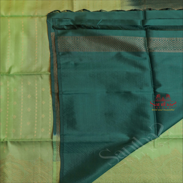 CELADON GREEN COLOUR BODY WITH GOLDEN ZARI STRIPS WITH CONTRAST BLOUSE & BORDER