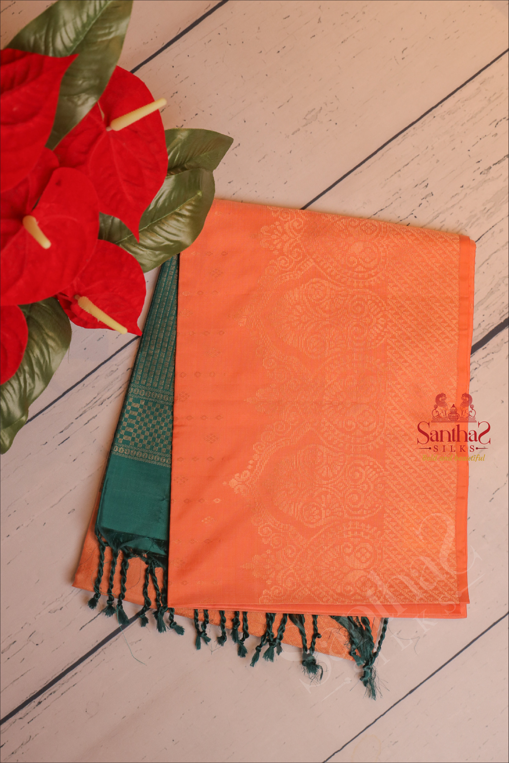 ORANGE COLOUR BODY WITH GOLDEN ZARI BUTTA WITH CONTRAST BLOUSE & BORDER