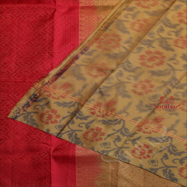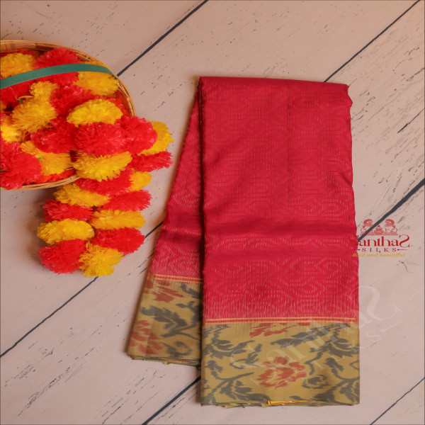 DARK PINK COLOUR BODY WITH GOLDEN ZARI EMBOSED WITH CONTRAST BLOUSE & BORDER